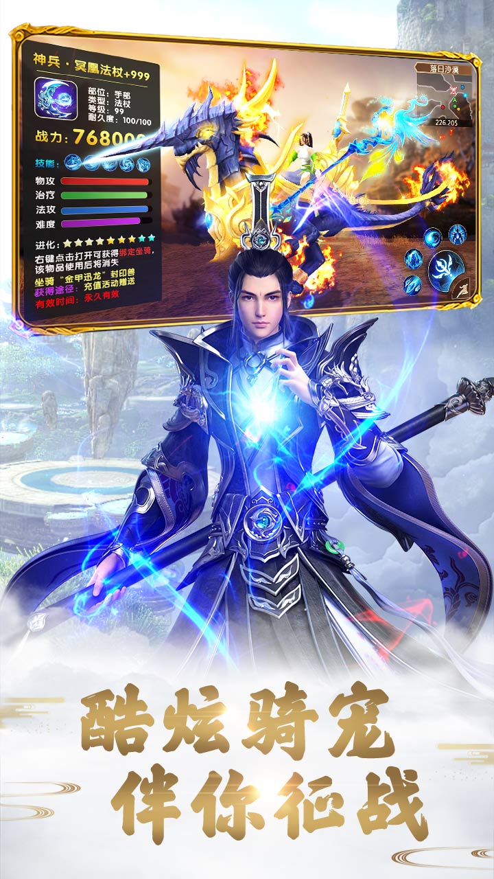 来自九天之上的巨鲲,北寒之地的雪狐,东海波涛的玄龙等奇珍异兽,可萌可凶,均可驯服为坐骑,伴你闯荡九州。